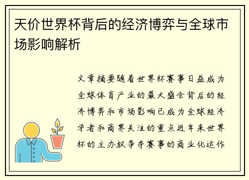 天价世界杯背后的经济博弈与全球市场影响解析